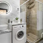 El apartamento cuenta con un patio, un balcón y una zona de estar, y comodidades como climatizador. El Reborn Luxury Apartments destaca por ofrecer comodidades como secadores de pelo y toallas de baño en el baño. También dispone de ducha a ras de suelo y un inodoro separado.